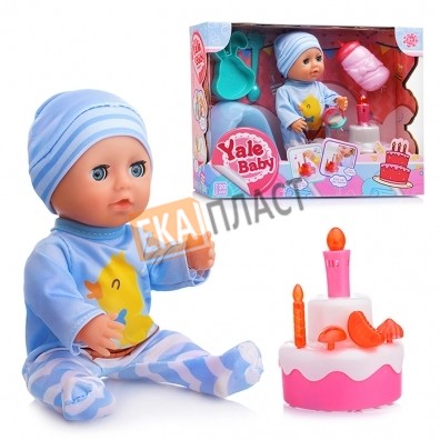 Милый пупс, с детально проработанным личиком, обязательно понравится вашей малышке. Кукла пьёт из бутылочки; ходит на горшок; держит соску; её можно купать. Глазки пупса закрываются. Рост игрушки 20 см. Туловище пластмассовое; голова, ручки и ножки выполнены из пвх. Части тела куклы подвижные. Пупс одет в голубой комбинезон с оригинальным принтом и шапочку такой же расцветки. Одежду легко снять и одеть. В комплекте с пупсом идут различные аксессуары: бутылочка, соска, горшок, торт со свечкой, 4 украшения для торта. Торт со свечкой имеет размер 8х8х11 см. Нажав на свечку, включится диодная подсветка пламени и заиграет песня «Happy Birthday to You». 16 отверстий в торте позволяют украсить его декором, входящим в комплект, по своему усмотрению. С таким набором девочка может играть в самые разные игры: гулять с пупсом, петь песенки, кормить, купать, переодевать, рассказывать сказки и укладывать спать. Игра с куклой учит ребёнка вниманию и заботе о малыше, развивает ответственность, воображение и фантазию.