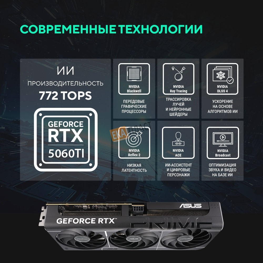 Видеокарта ASUS GeForce RTX5060Ti 8G OC EDITION 8Gb DDR7 128 bit 3*DP/HDMI (PRIME-RTX5060TI-O8G) RTL в г. Ейск