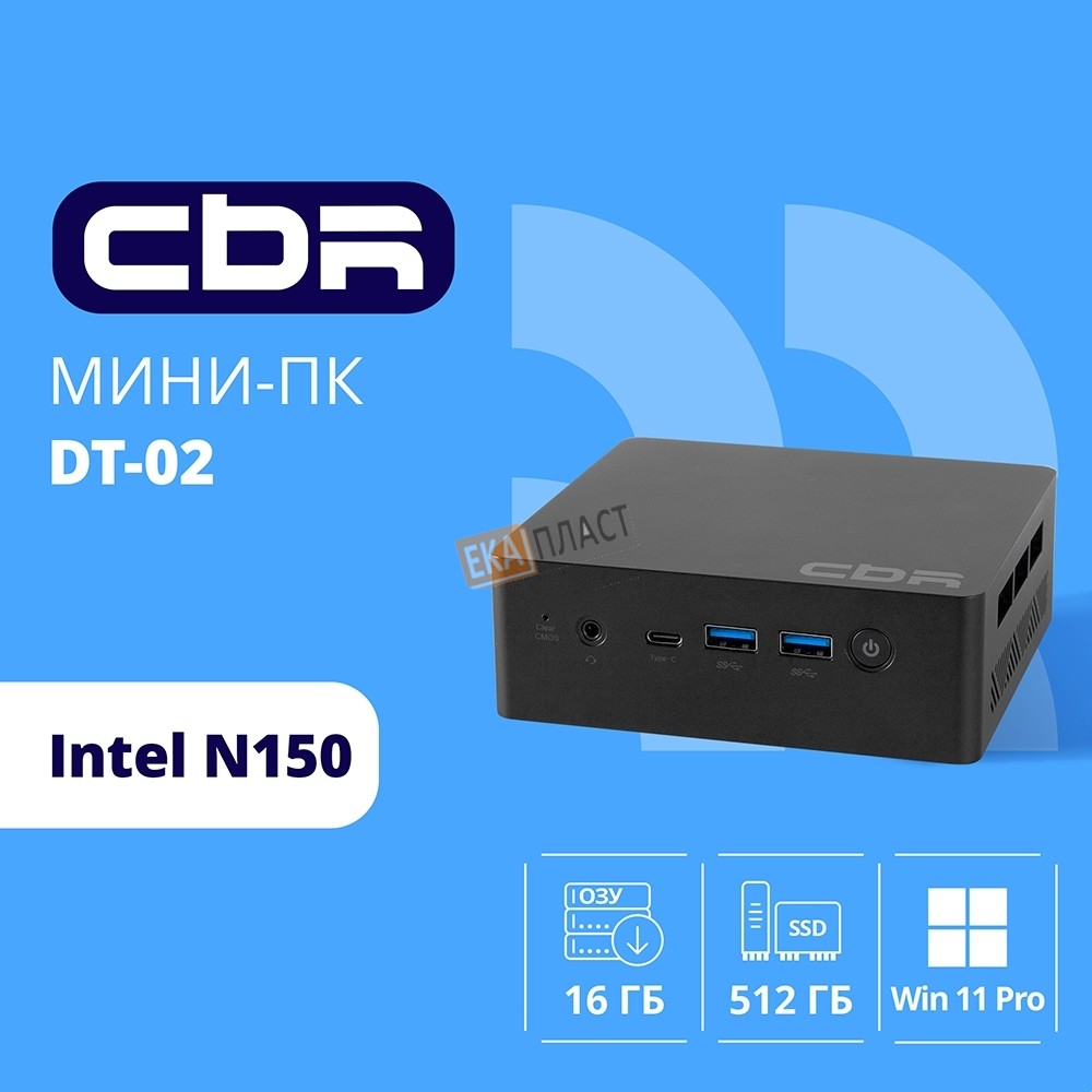 CBR MiniPC-SMCR-DT02(Intel N150/16Gb DDR4/512Gb SSD PCIe / W11Pro /RJ45*1, HDMI*2, USB-A*4, USB Type-C *1 3.5mm Combo Jack, RJ-45, 124.5*112) в г. Евпатория