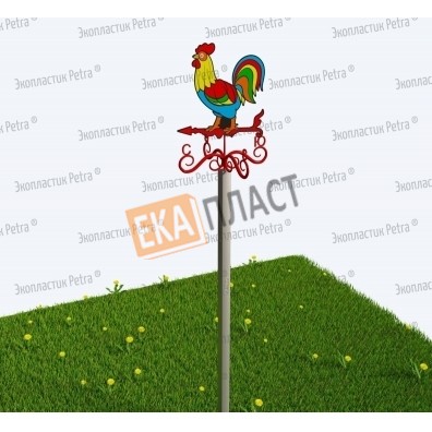 Флюгер «Красочный петушок большой» под пластиковой бронёй с опорами из нержавеющей стали в г. Избербаш