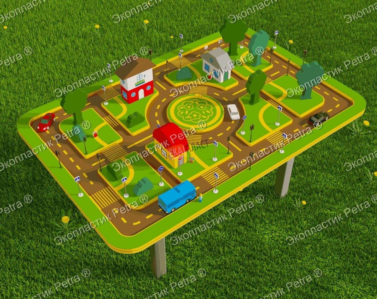 Уличный Ландшафтный стол ПДД из экопластика Petra ® и нержавеющей стали (в комплект входят игрушки для занятий:вся городская инфраструктура, транспорт, животные,дорожные знаки) в г. Майкоп