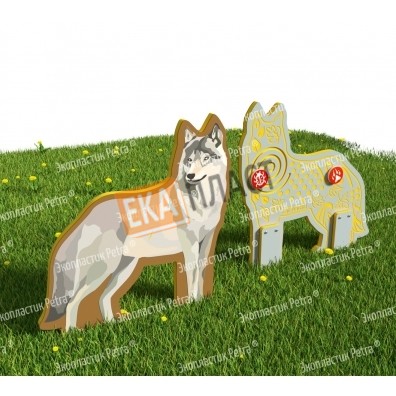 Двусторонний модуль с сенсорными элементами «Тактильный топиарий Волк» из экопластика Petra ® и нержавеющей стали в г. Нефтьюганск