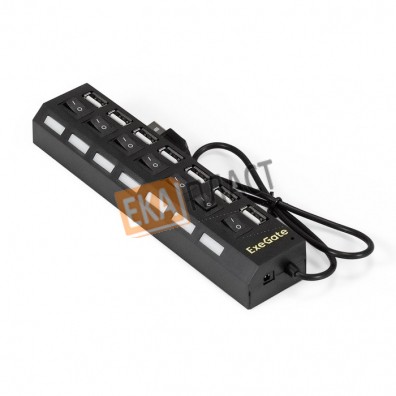 Exegate EX293978RUS USB-Хаб (концентратор) ExeGate DUB-72SW (кабель-адаптер USB2.0 --> 7xUSB2.0, кнопки включения/отключения для каждого порта, Plug&Play, черный) в г. Нефтьюганск