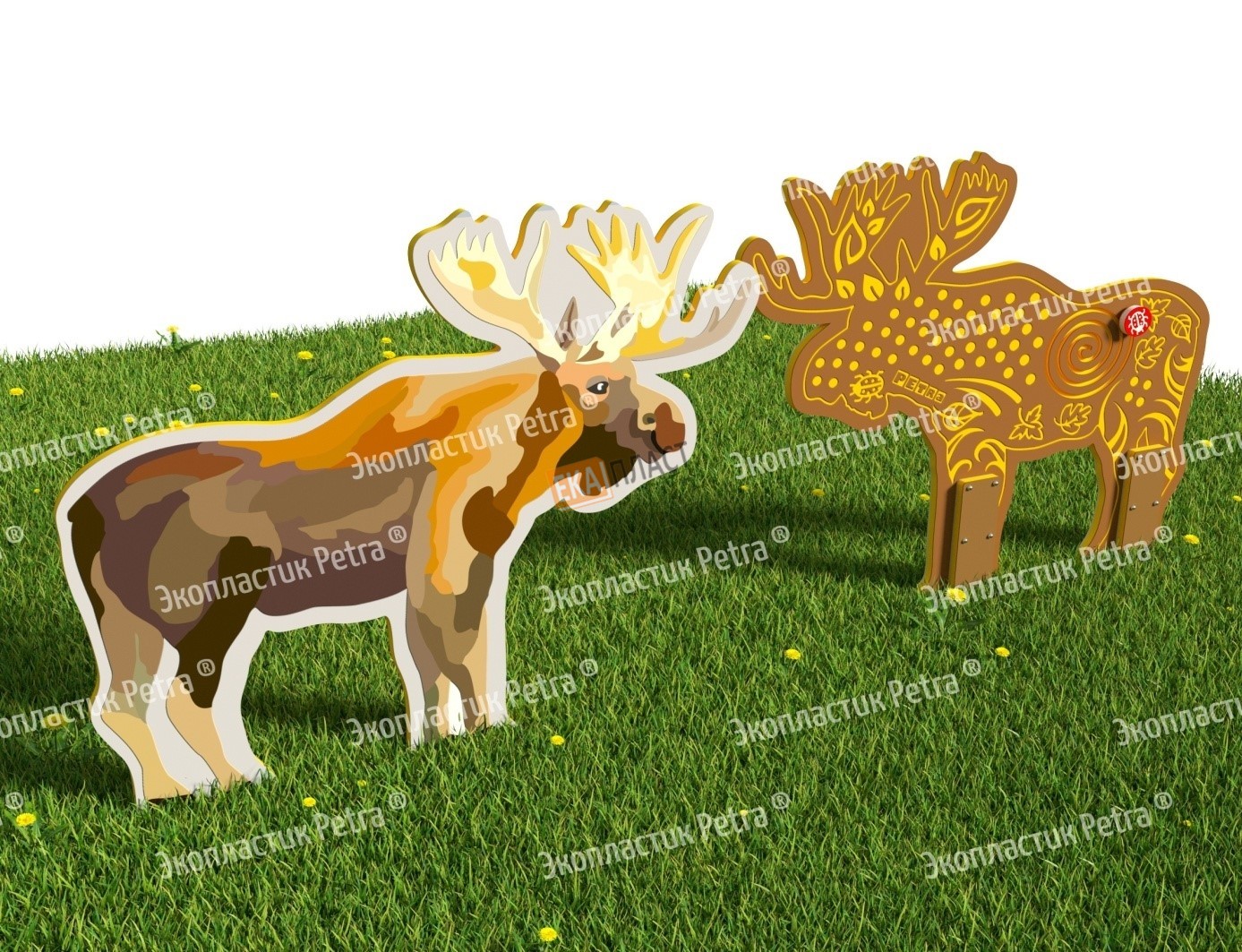 Двусторонний модуль с сенсорными элементами «Тактильный топиарий Лось» из экопластика Petra ® и нержавеющей стали в г. Норильск