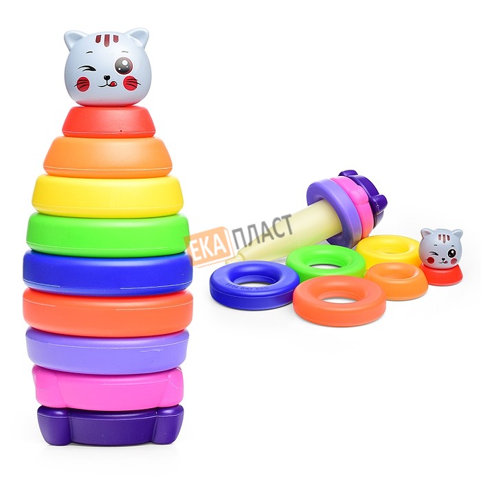 Пластмассовая игрушка состоит из стержня, 9 колец.