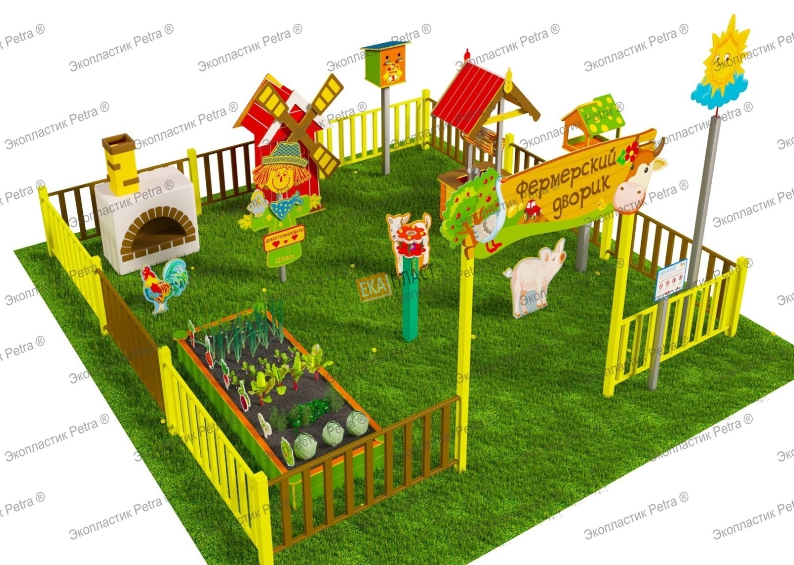 "Игровая развивающая площадка ""Фермерский дворик"" из Экопластика Petra ® и нержавеющей стали. Комплект: Оптима 2" в г. Староминская