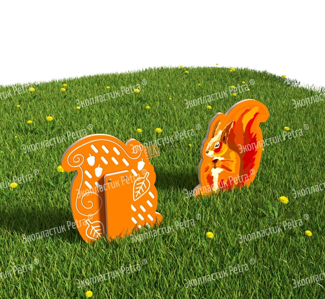 Двусторонний модуль с сенсорными элементами «Тактильный топиарий Белочка» из экопластика Petra ® и нержавеющей стали в г. Афипский