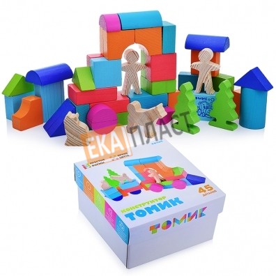 • Комплектация: 45 деталей разной формы, цвета и размера, памятка по использованию деревянных игрушек.