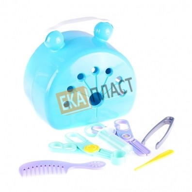 В комплект набора также входят: расчёска, пинцет, термометр, шприц, щипцы, ножницы.
