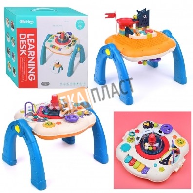 • Двухсторонний развивающий столик: одна сторона с различными развивающими играми, другая для строительства из блочного конструктора.