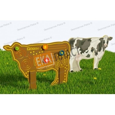 Двусторонний модуль с сенсорными элементами «Тактильный топиарий Корова» из экопластика Petra ® и нержавеющей стали в г. Бугульма