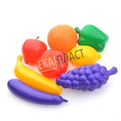 • В наборе 8 овощей и фруктов.