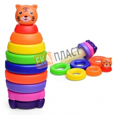Пластмассовая игрушка состоит из стержня, 9 колец.