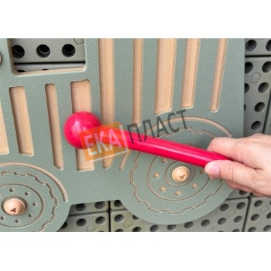 Музыкальный настенный трактор — простой ударный инструмент, по которому можно проводить или постукивать прилагаемым молоточком. Контрастные выступы и текстуры на корпусе и колёсах трактора помогают создавать разнообразные ритмы и перкуссионные звуки. Особенности: - Перкуссионный инструмент в форме трактора. - Предназначен для крепления на STEM‑стену. - Размеры: примерно 360 мм × 345 мм. - В комплекте — молоточек. - Молоточек закреплён на STEM‑стене с помощью шнурка.