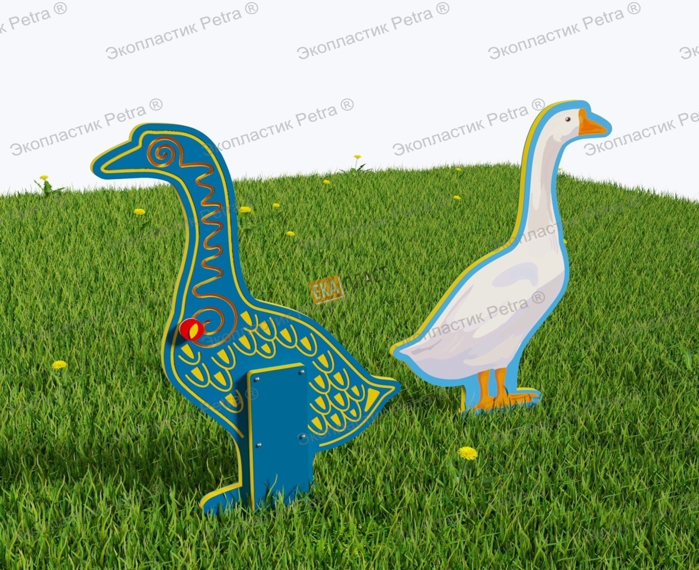 Двусторонний модуль с сенсорными элементами «Тактильный топиарий Гусь» из экопластика Petra ® и нержавеющей стали в г. Ялта